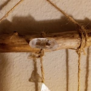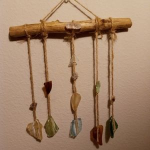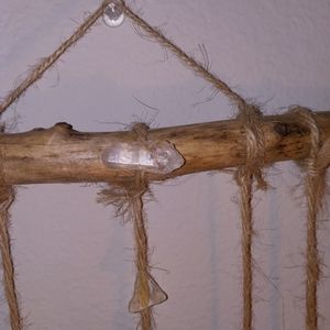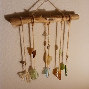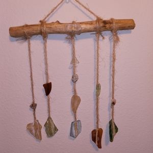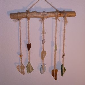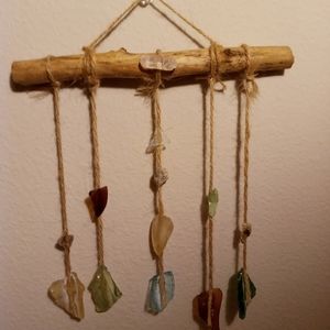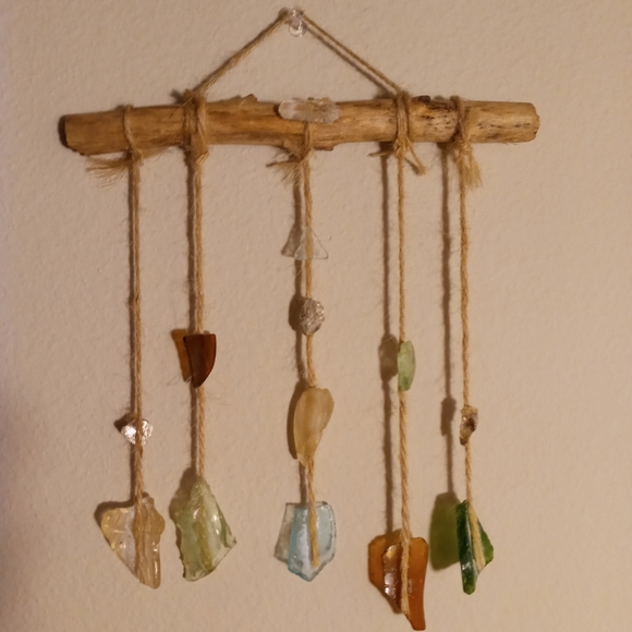 Hand made by A Bohemian Mama. Made with creek glass, mica, and a beautiful free fallen branch, I found on a very special walk. I also added my favorite clear quartz crystal on top. This piece was finished off with super glue and twine to create this Magickal wall hanging. It's pretty sturdy, but would recommend immediate hanging and little movement as possible. This piece has been Saged and is ready for a new home. Remember Magick is all around you all the time! Peace Love & Light! Xo