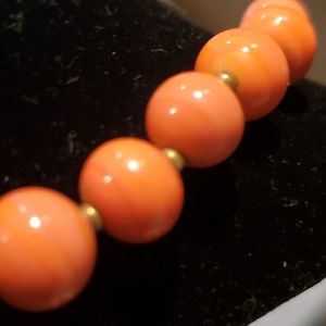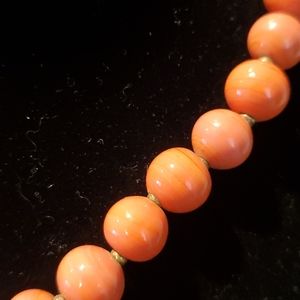 Art Deco or Vintage Art Deco Swirled Coral Art Glass Beaded necklace. Approximately 15.5" around the neckline. Stunning piece. Some light signs of age such as patina between beading. Beads are approximately 9.88mm in diameter. Original price is based on the original price of a similar listing.
