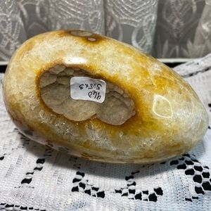 The spiritual meaning of Citrine is its yellow hues symbolizing the spiritual qualities of joy, abundance, and transmutation. ... Citrine is also known as the Merchant's Stone, due to its ability to transmute energies quickly and easily, facilitating transfers of energy from one to another.