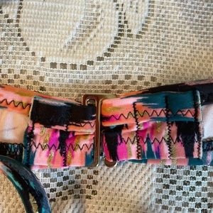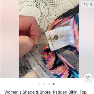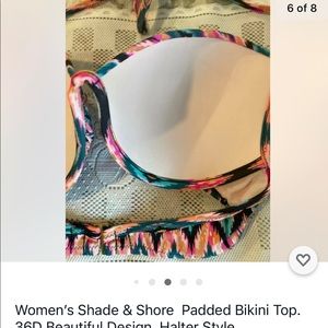 Shade and Shore Bikini top. Halter style, beautiful colors. Gently worn. Excellent used condition.The smallest snag on inside of cup where price tag was connected. Cups are approx 8” long by 6” wide. Padded cups.