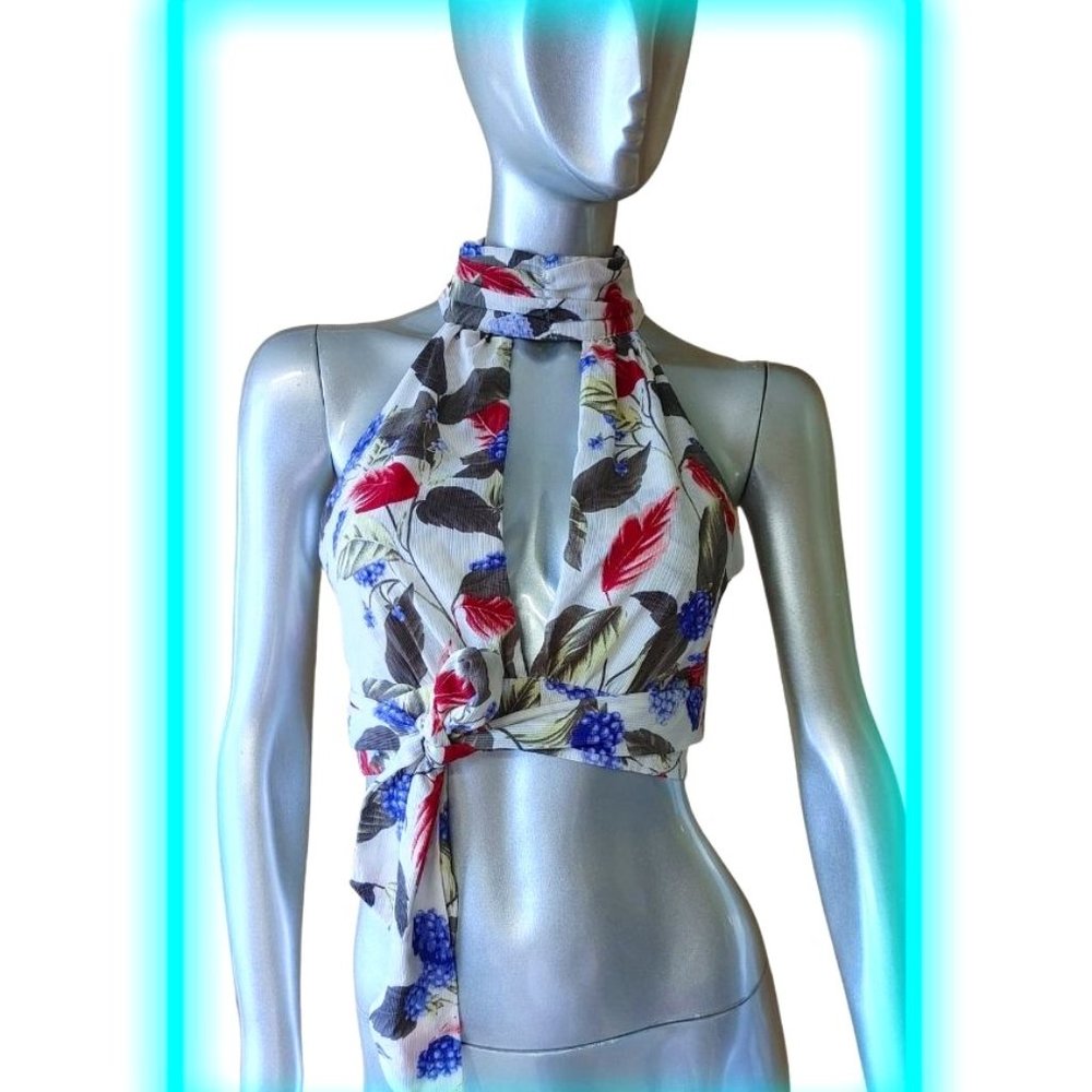 L'Atiste by Amy Sleeveless Tied Around Waist Floral Crop Top/Blouse Size Medium