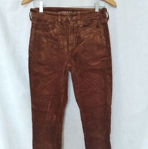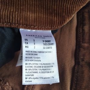American Eagle super stretch corduroy pants. Size 2. When laid flat the waist measures approximately 14". From crotch to hem they measure 24.5"