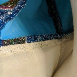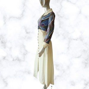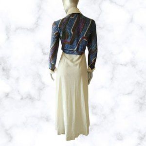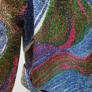 Vintage 70s Sz 14 Button Down Semi Sheer Long Sleeve Sparkly Disco Cocktail Party Dress