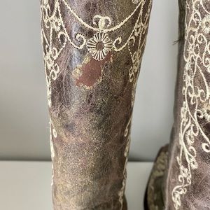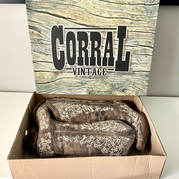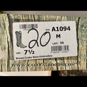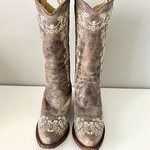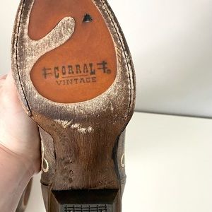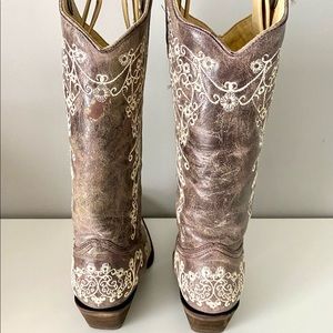 CORRAL BROWN CRATER WITH BONE EMBROIDERY COWGIRL BOOTS - SNIP TOE, box included