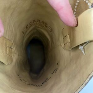 Worn once, there is some residue and a spot of missing finish on the back of the left boot- see pics. I don’t know what’s caused this- they were kept in a box in my closet. Other than that, like new condition.