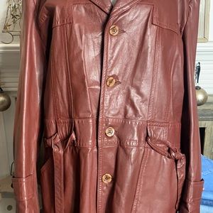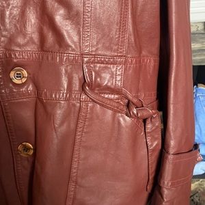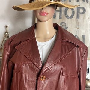This authentic 1970’s vintage mid length leather jacket is AMAZING. Oversized collar, unique pockets, wood buttons & flannel removable lining makes this a must have for your Vintage collection. Pair with your favorite vintage denim jeans, tee & boots for a laid back vintage sexy look. Don’t be shy strutting you’re stuff in this jacket! You’re bound to turn heads everywhere you go. Excellent condition. Size L