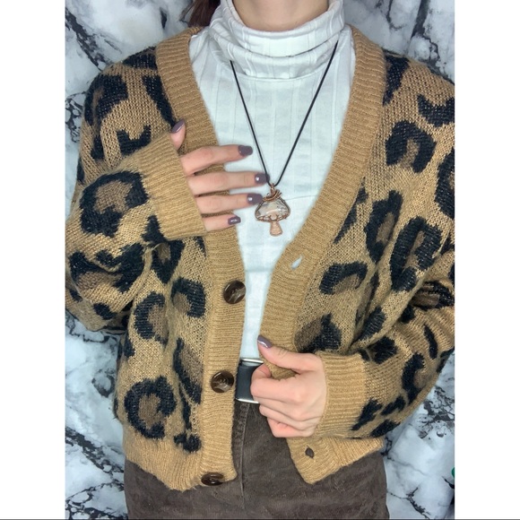 Cheetah Print Button-Up Sweater Almost Famous Size Medium Smoke Free Home Lightly Worn, Great Condition