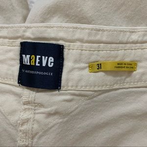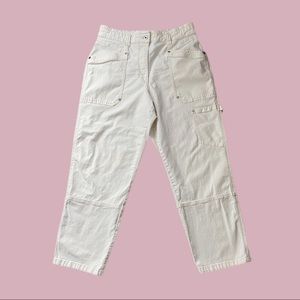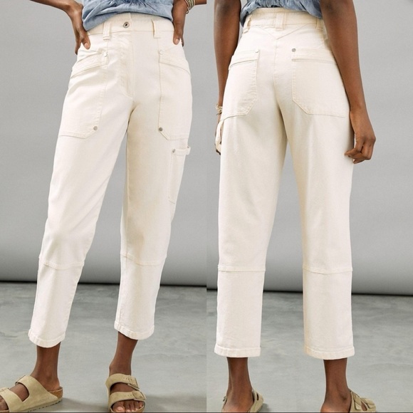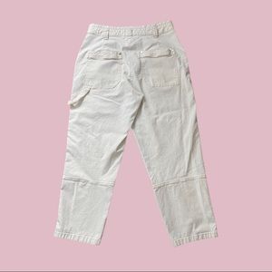 Ivory utility cargo pants by Maeve Anthropologie. Features high waisted fit, tapered legs, and ankle length. Very comfy material. Good preloved condition with minor wear, no major flaws.