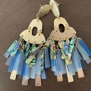 EUC blue mix kitty earrings. Gold plate over brass. Abalone and acrylic features.