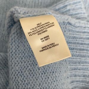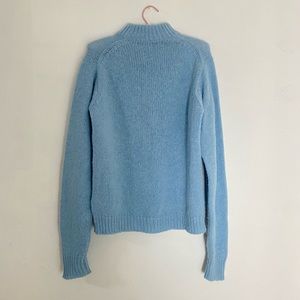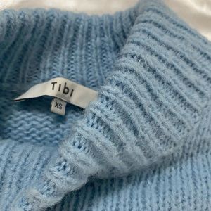Tibi cozette alpaca easy pullover sweater. Super cute mockneck sweater in perfect shade of blue. Material is very soft but might be a bit itchy on sensitive skin. Retail price is $425. Good preloved condition with minor wear, no major flaws.