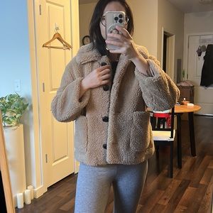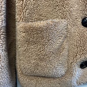 Super cute and soft. I loved this teddy jacket. Big pockets in the front, bottoms to close. In great condition!
