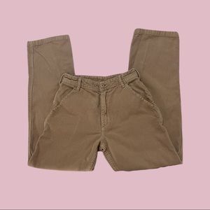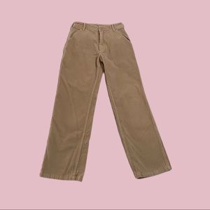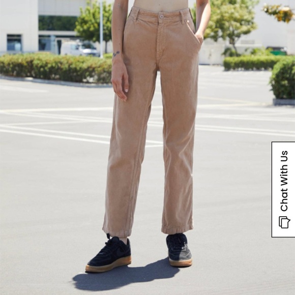 John Galt corduroy pants in tan ✨ So cute and comfy on, featuring mid-high waisted fit, button zip fly closure, and straight legs. Skate inspired. Last photo is from the website and model is 5'10 with 25" waist. Good preloved condition with minor wear, no major flaws.