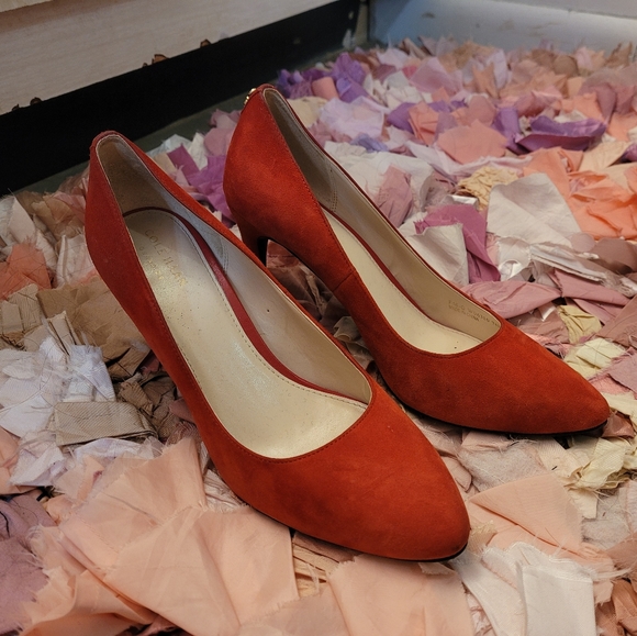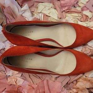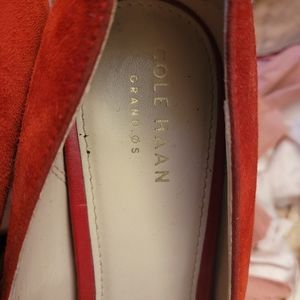 These are Cole Haan shoes with a rounded tip. They are a 7 1/2 (7.5).