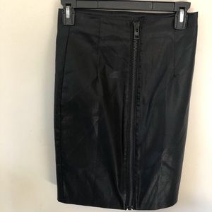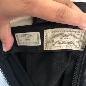 Lightly worn, excellent condition skirt with the trademark oversized zipper pull and exposed zipper in the back. Fabric looks similar to leather but is a stretchy and comfortable imitation. #goth #allsaints