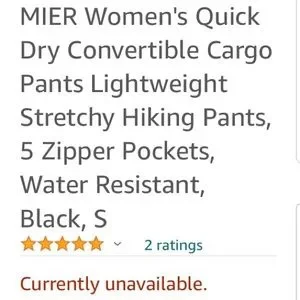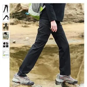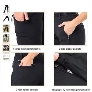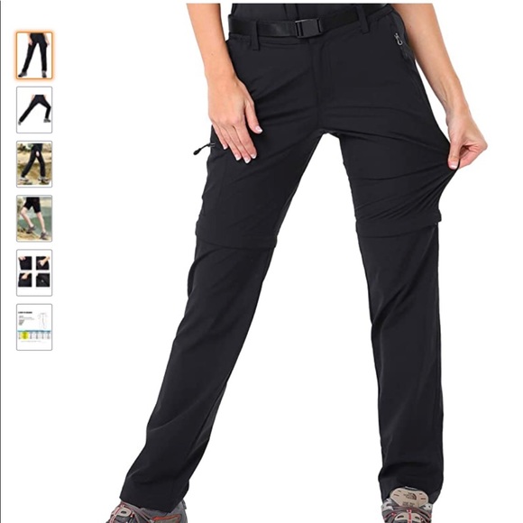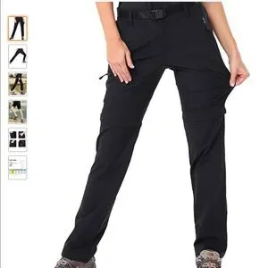 MIER Women's Quick Dry Convertible Cargo Pants Lightweight Stretchy Hiking Pants, 5 Zipper Pockets, Water Resistant, Black.