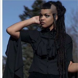 I love this top but it unfortunately runs small for a large. Maybe it’s more of a medium or for size large folks with smaller chests. So cute!! #goth #gothic #witch