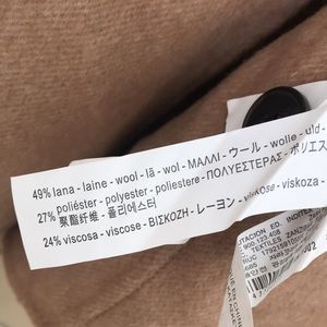 Wool blend cape. Sleeve opening. One button closure. Pockets.