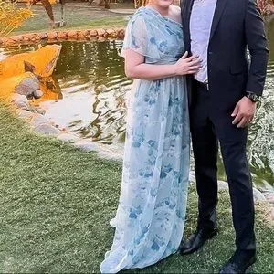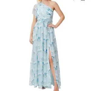 One shoulder gown. Worn one time for a wedding. Many compliments on it. Dry cleaned.