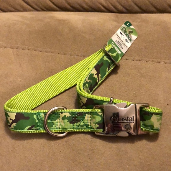 Nwt dog collar, Green camouflage style, easy open and close , adjustable collar