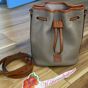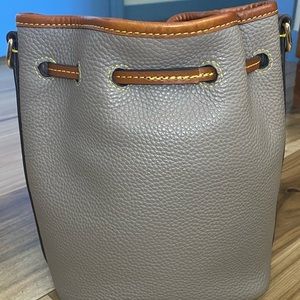 Dooney & Bourke Pebble Grain Small Drawstring Bucket Shoulder Bag Grey