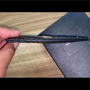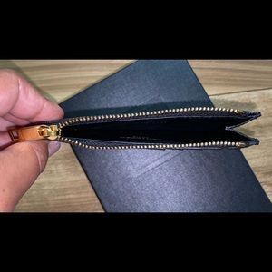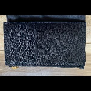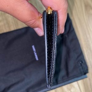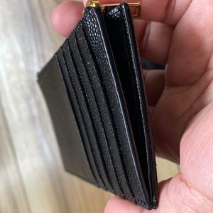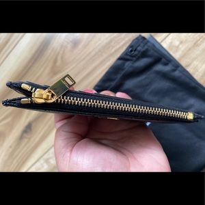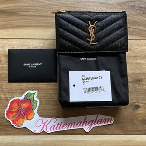 Black YSL SAINT LAURENT MATELASSÉ ZIPPED FRAGMENTS CARD CASE IN GRAIN DE POUDRE.