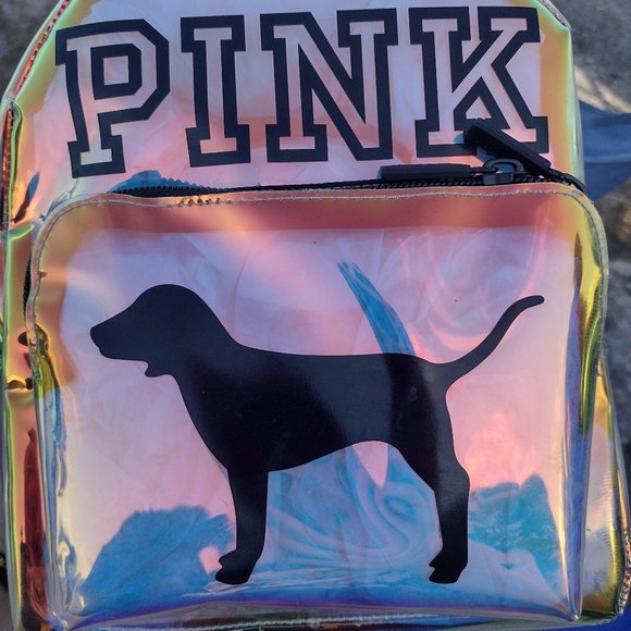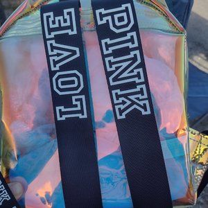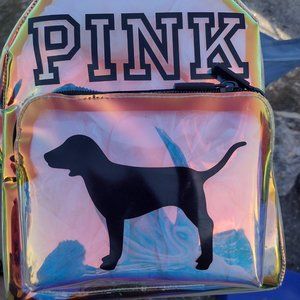 Pink Victoria secret mini backpack new with tag clear holographic color.