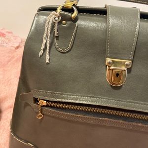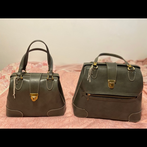 Great condition Olive green Vintage Leather large Doctors Bags Medical Steampunk Suitcase Travel Home Decor Set..