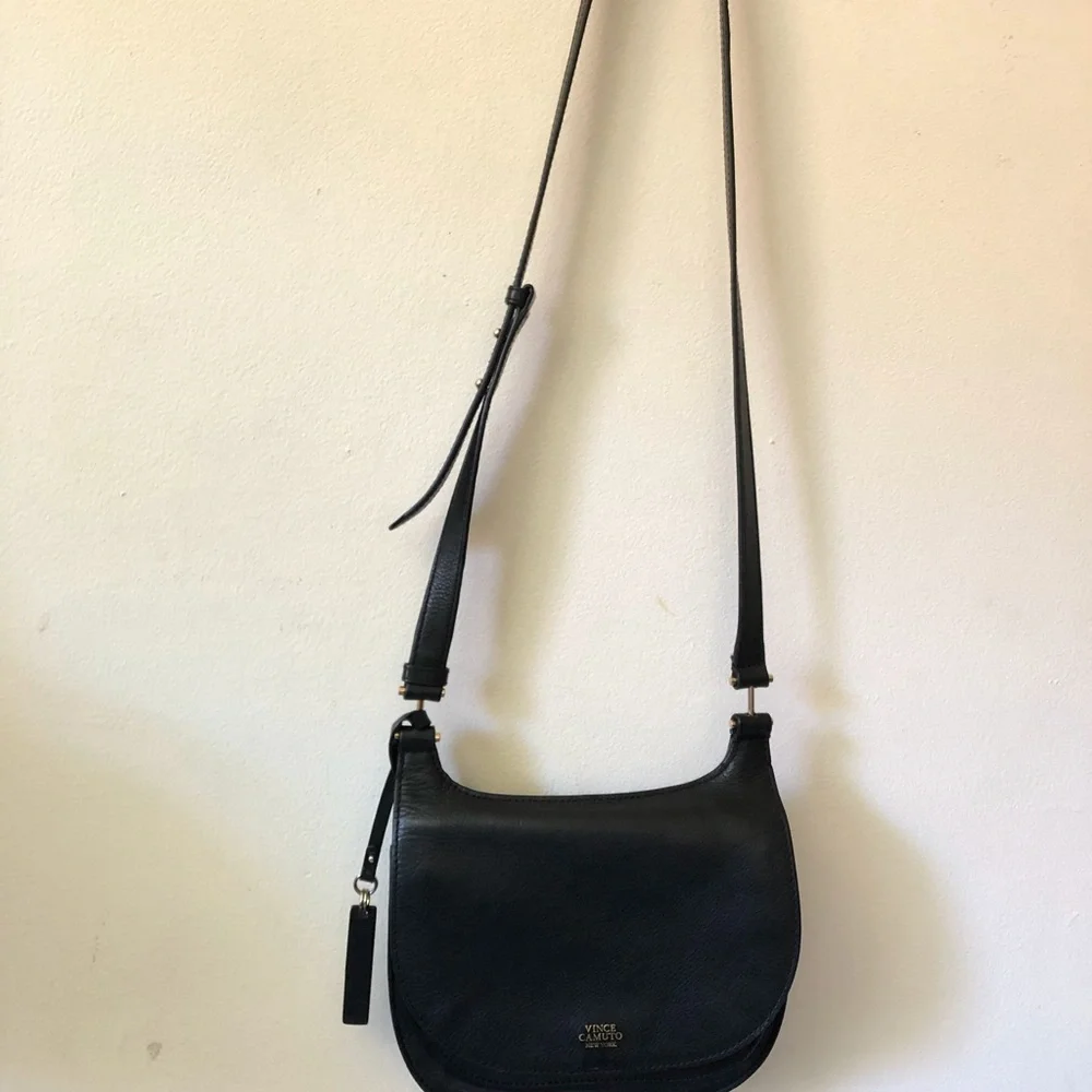 Used Vince Camuto purse with a bag charm. Magnetic closure sticks and the charm is scuffed. Otherwise, excellent condition it’s lots of pockets. Great going out purse. #camuto