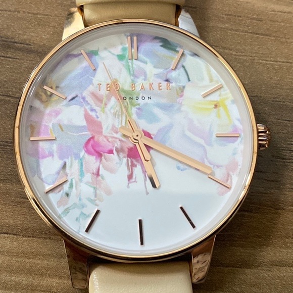 Womens Ted Baker te50494002 Floral Dial Gold Tone Leather Watch.