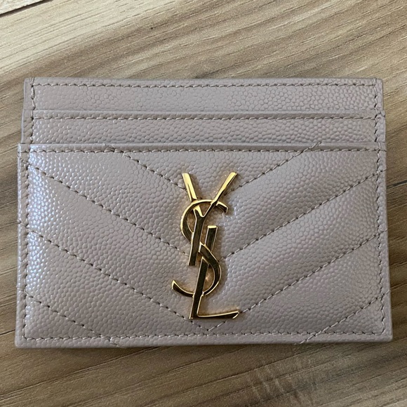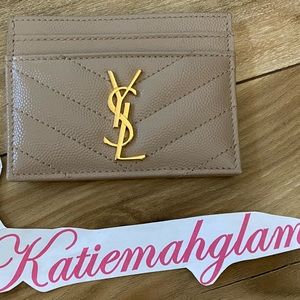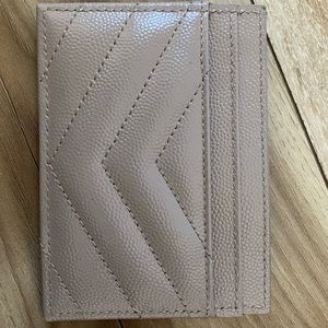 YSL YVES SAINT LAURENT MATELASSÉ CARD CASE HOLDER GRAIN DE POUDRE DARK BEIGE.