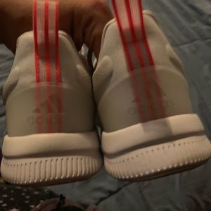 Selling These cute Adidas shoes/sneakers used only once but mainly in storage .. please view pictures and video for full description and condition of the product.. No rips or stains that I have noticed.
