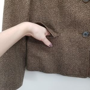 Ann Taylor LOFT Brown Tweed Blazer Jacket with two front pockets, 2 front buttons, and single breasted.