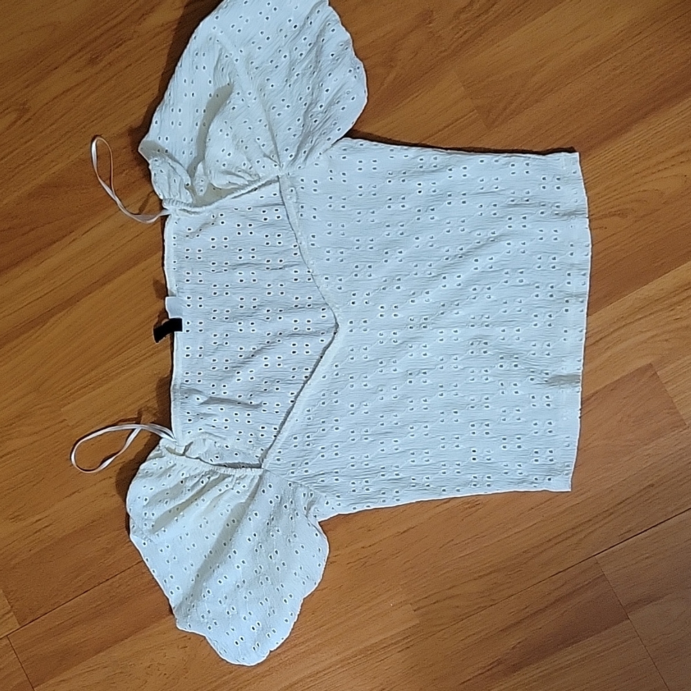 2 V neck line and puff sleeve eyelet embroidery top very cute. colors Yellow and Cream mid waist. 2 for $20