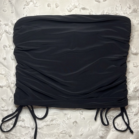 Express Body Contour Double Layer Ruched Side Tie Tube Top