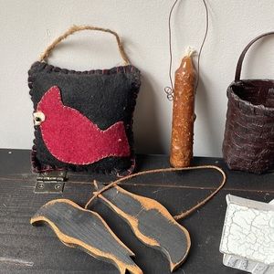 6 separate items for one price, all very good used condition. 5 items can be hung. Bottle made of a ceramic/clay material.