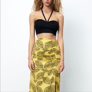 New ! High-waisted skirt made of linen blend fabric. Front elastic ruching and slit at hem. Back hidden in-seam zip closure. From ZARA.