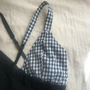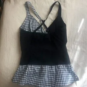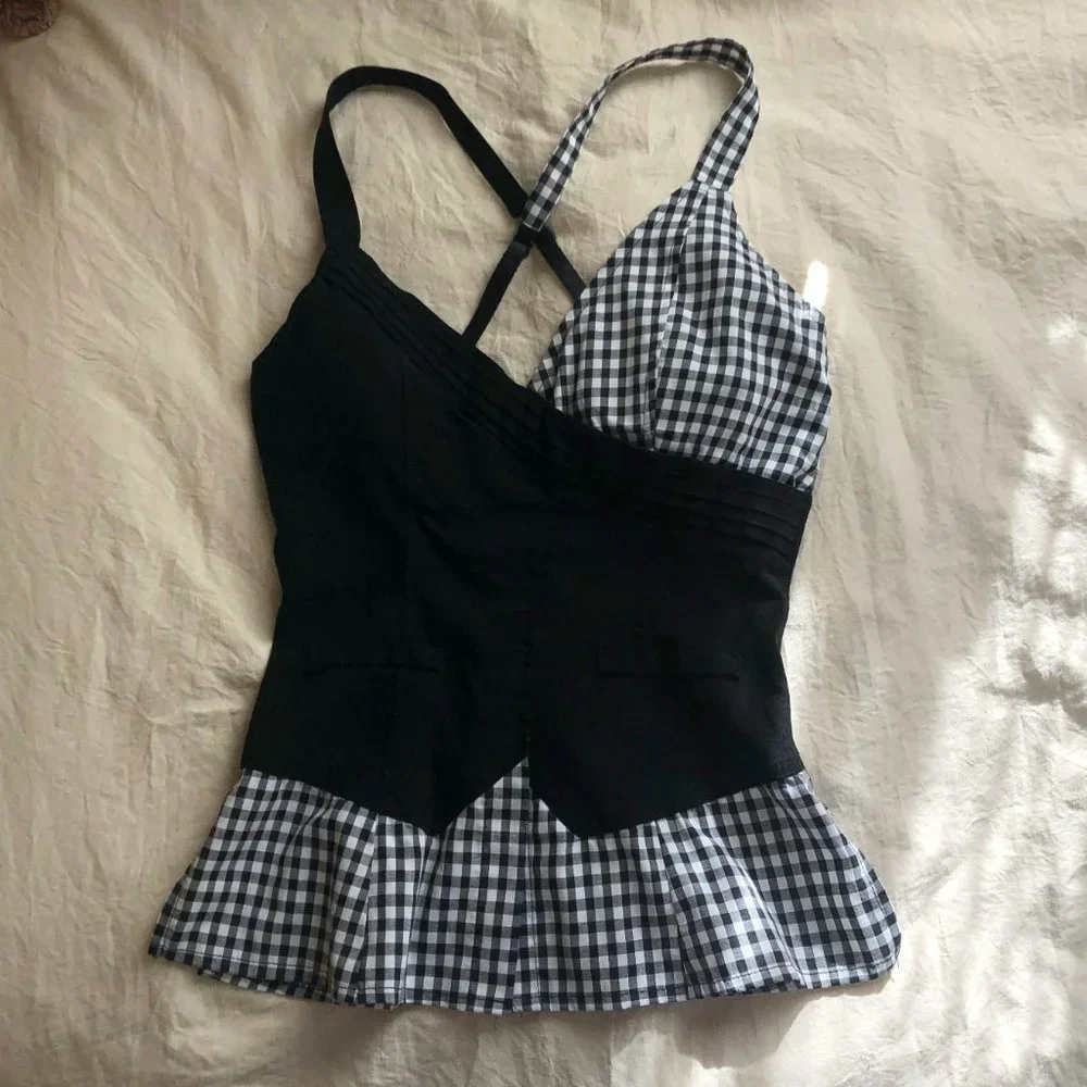 Super cute and Flattering Top. Reminds me of something from Lip Service! From the Brand "Ole Ole" and in black with a gingham print design. No flaws and from a clean smoke free home!