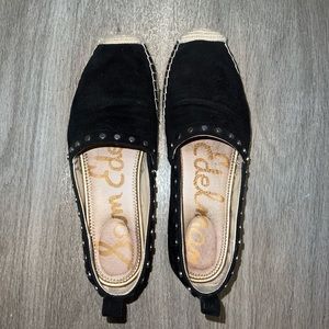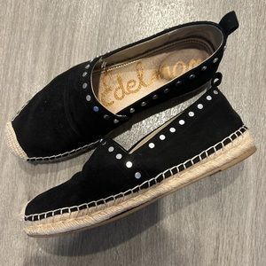 -black suede with silver hardware