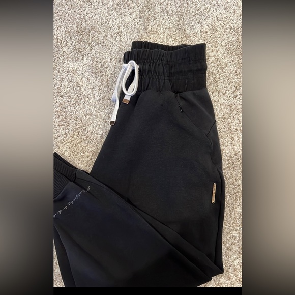 “It’s a beautiful day to be alive” graphic on left leg, Gymshark logo on right leg, gold plate detail on right pocket
