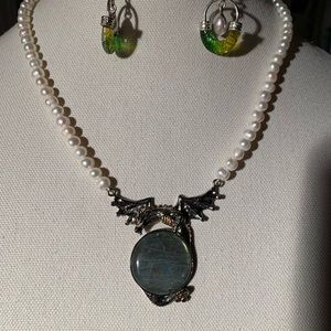 Sterling silver 925 stamp necklace earring gems labradorite tourmaline genuine pearls real stone not plastic well designed made in Thailand gemsporium