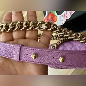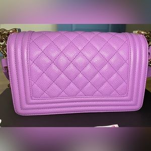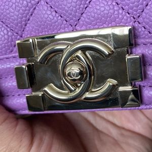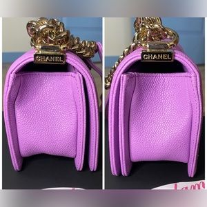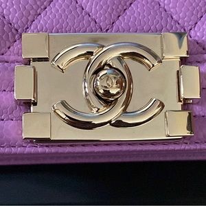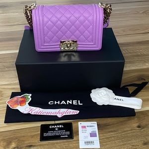 Authentic CHANEL 20C Purple Caviar gold hardware SMALL Boy Flap Bag