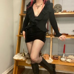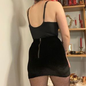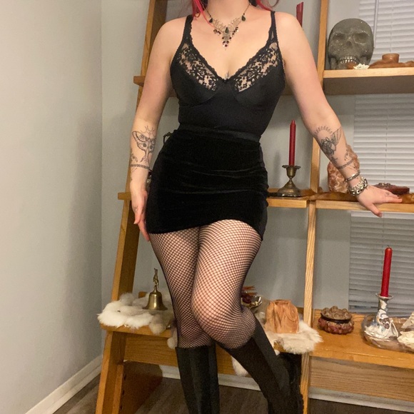 Super comfortable miniskirt that’s stretchy and fitted. The bralette tank is also available! Great layering piece for adding texture! There’s a zipper in the back. This is a size small! This is 11 inches laid flat so it should fit an extra small as well.