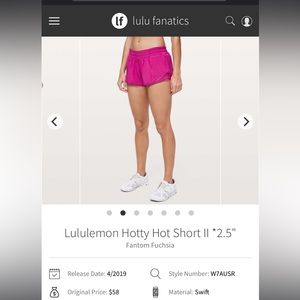 Lululemon hotty hot 2.5" size 2 fantom fuchsia