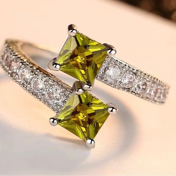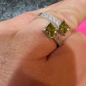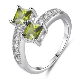 Beautiful green ring with cubic shiny zircon stones size 8