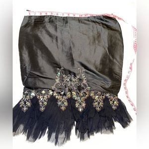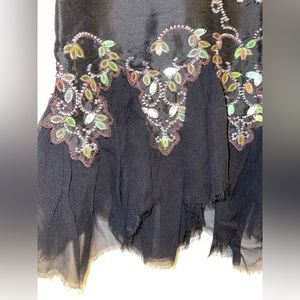 Vtg NOS Y2K Fairy Skirt Black Silk midi skirt Beade chiffon asymmetrical Size 10