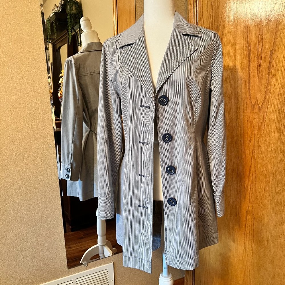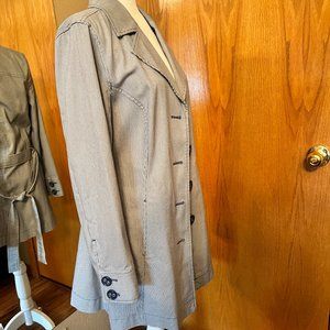 • Super cute Sonoma Life & Style navy & white railroad striped, belted trench coat – like new condition