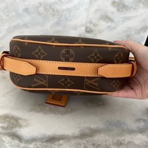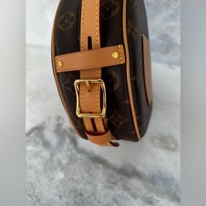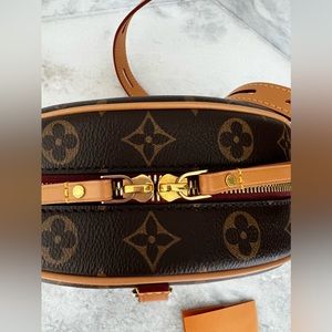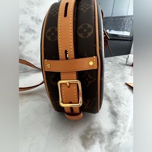 External- some scuffs on the vachetta piping, marks on vachetta crossbody strap, dust on canvas, minor hardware scratches.