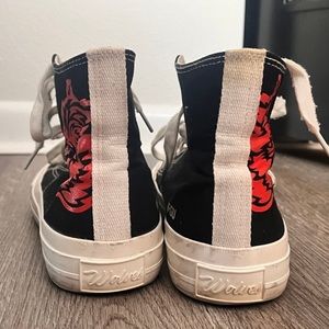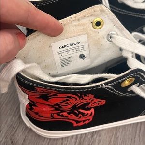Red and black Darc sport converse. These have only been worn a couple times. Washing them once would probably get the self tanner off
