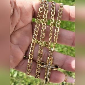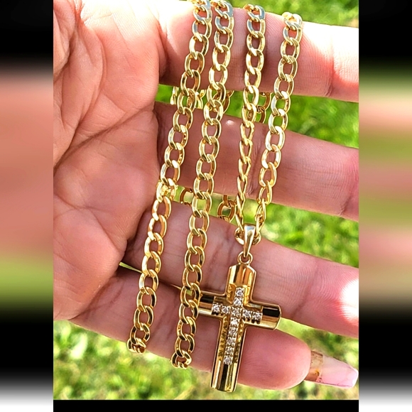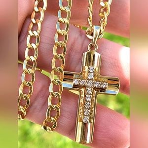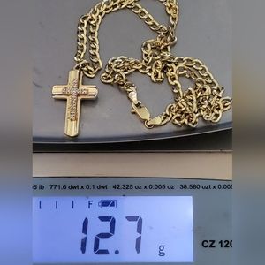 Beautiful gold 14k Chain and Cross Natural Diamond, Gram 12.7 ,NO ZIRCONIA O MOSANITE 100% NATURAL DIAMOND AND 100% 14K GOLD Thanks