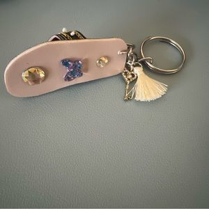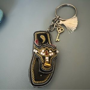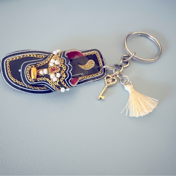 Add a touch of Pakistani culture to your keys with this Multani Joti Kolhapur Shoe Keychain. Each keychain is handmade and serves as the perfect party favor or gift souvenir. The shoe design is a unique and eye-catching addition to any collection. The keychain fits easily in your pocket or bag, making it a convenient and stylish accessory. Perfect for any collector or those looking to add a pop of color to their daily routine.